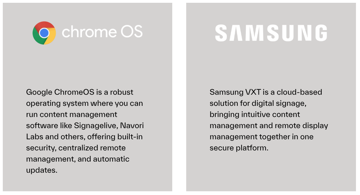 Supported by the latest advancements in screen and connectivity technology, our portfolio features leading brands, supported by digital signage experts in each region.